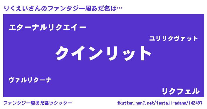 | 男性向けラノベタイトル風あだ名 | 『りくえいに滅ぼされるだけの簡単なお仕事です』 |