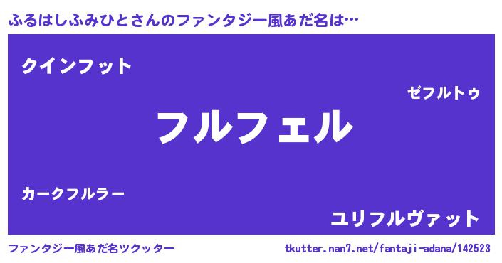 | 男性向けラノベタイトル風あだ名 | 『ふるはしふみひとの憂鬱』 |
