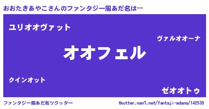 | 女子向けラノベタイトル風あだ名 | 『(仮)おおたきあやこのやんごとなき事情』 |