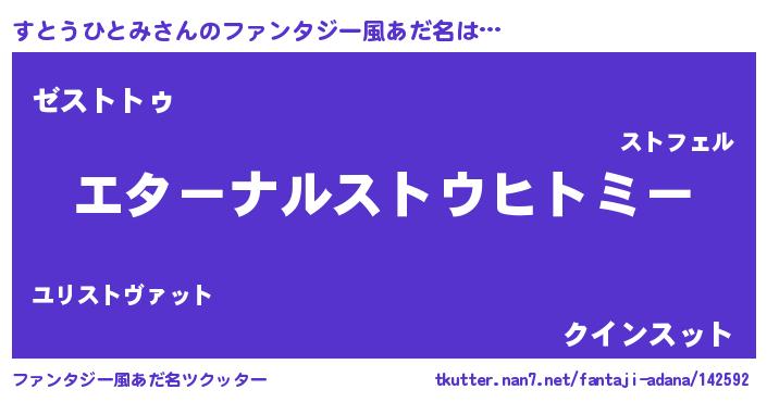 | 女子向けラノベタイトル風あだ名 | 『すとうひとみの雑貨屋さん』 |