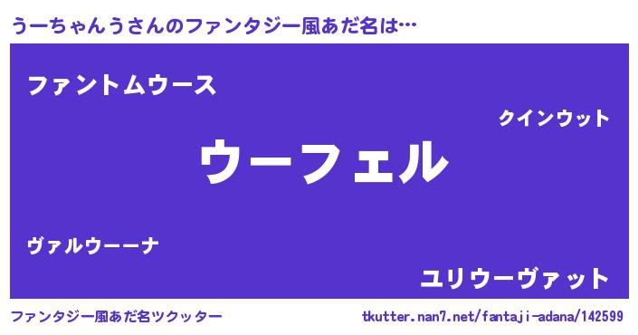 | 女子向けラノベタイトル風あだ名 | 『うーちゃんう姫と円卓の騎士』 |