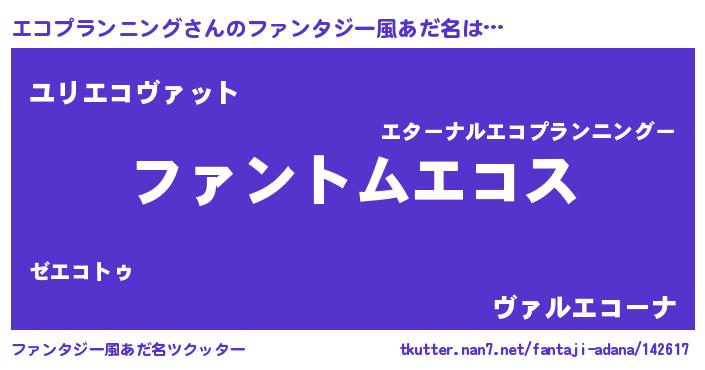 | 欧米人風あだ名 | 『ウサインエコプランニング』 |