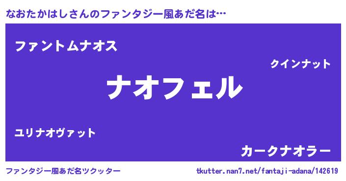 | 男性向けラノベタイトル風あだ名 | 『ナオタカハシアートオンライン』 |