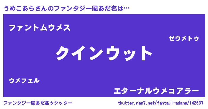 | 意味不明あだ名 | 『眠気覚ましガムうめこあら味』 |