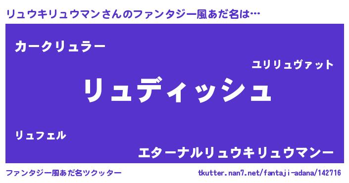 | 伝説のあだ名 | 『古文書に記された暗殺者リュウキリュウマン』 |