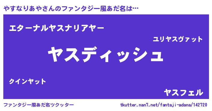 | 男性向けラノベタイトル風あだ名 | 『やすなりあやという概念が存在しない退屈な世界 』 |