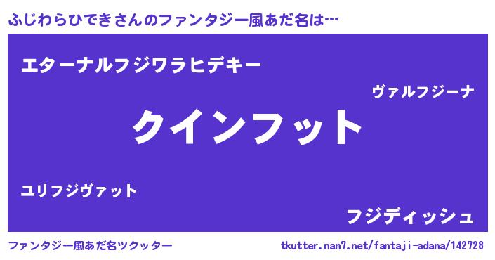 | 男性向けラノベタイトル風あだ名 | 『ノーゲーム・ノーフジワラヒデキ』 |