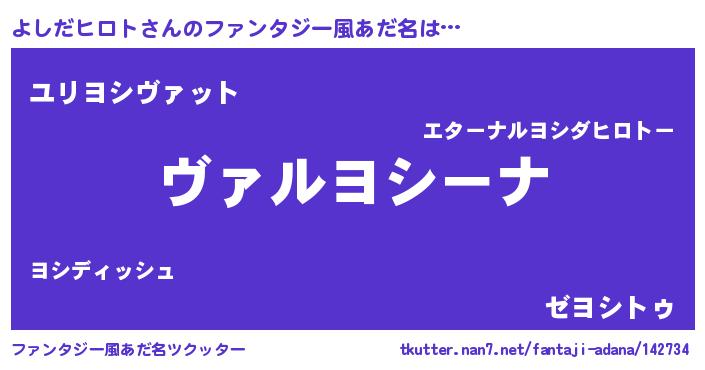 | 男性向けラノベタイトル風あだ名 | 『魔弾の王とよしだヒロト』 |