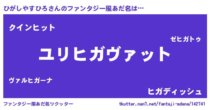 | 男性向けラノベタイトル風あだ名 | 『ひがしやすひろ~年齢イコール彼女いない歴の魔法使い~』 |