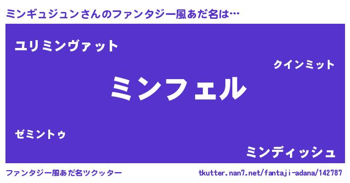 | 男性向けラノベタイトル風あだ名 | 『ミンギュジュンの憂鬱』 |