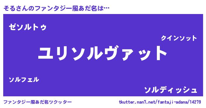 | 女子向けラノベタイトル風あだ名 | 『そるの玉の輿計画!』『闇のそる』 |