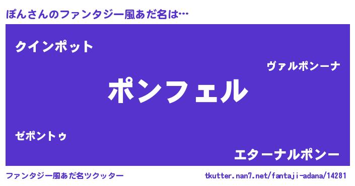 | 女子向けラノベタイトル風あだ名 | 『ぽん姫と円卓の騎士』『ぽんの婚約者』 |