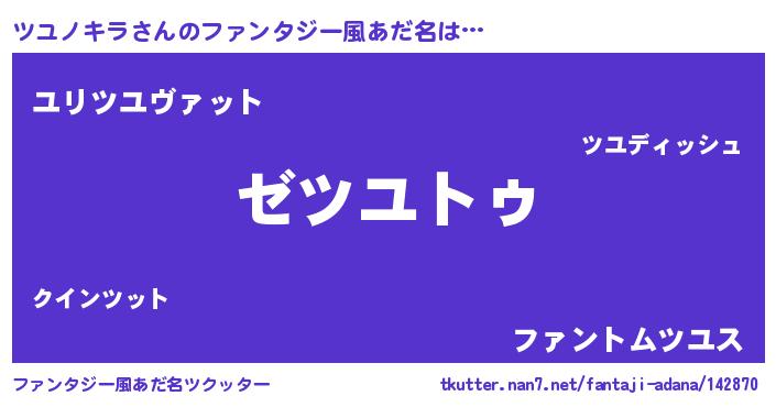 | 意味不明あだ名 | 『自称ツユノキラ』『永久保存ツユノキラ』 |