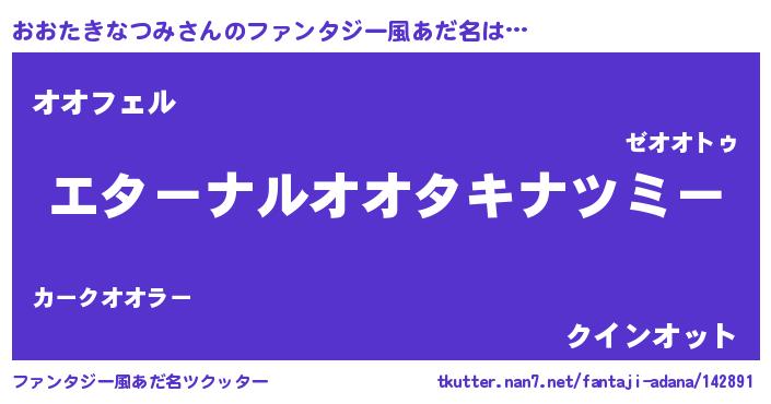 | 女子向けラノベタイトル風あだ名 | 『おおたきなつみの雑貨屋さん』 |