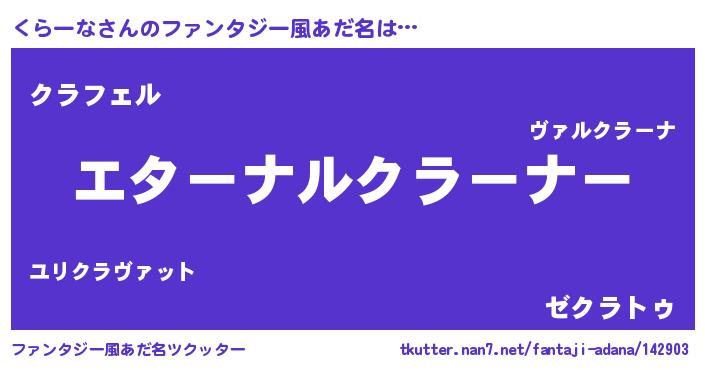 | 女子向けラノベタイトル風あだ名 | 『くらーなの雑貨屋さん』 |
