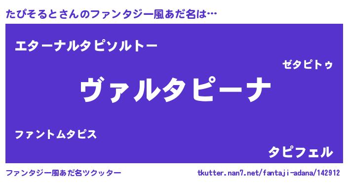 | 女子向けラノベタイトル風あだ名 | 『悪役たぴそるとに転生したようですが、知った事ではありません』 |