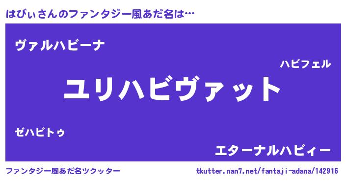 | 男性向けラノベタイトル風あだ名 | 『ハビィスレイヤー』『魔弾の王とはびぃ』 |