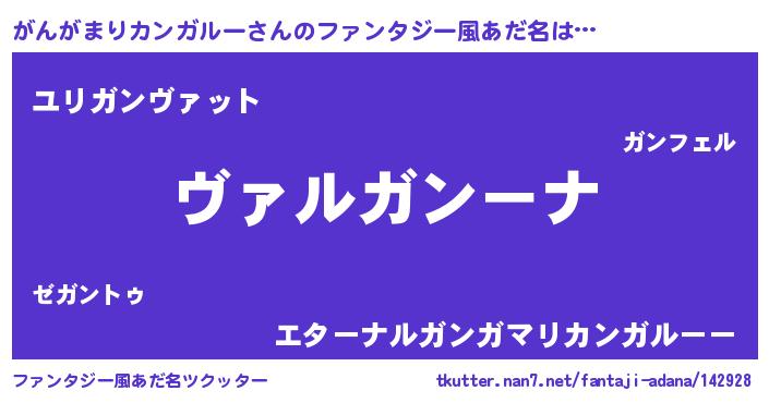 | 女子向けラノベタイトル風あだ名 | 『乙女ゲームの破滅フラグしかない悪役がんがまりカンガルーに転生してしまった…』 |