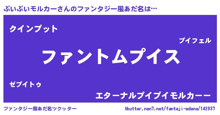| 男性向けラノベタイトル風あだ名 | 『ぷいぷいモルカーの嫁は女の子じゃないと思った?』 |