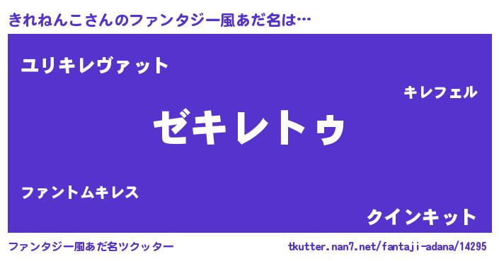 | 女子向けラノベタイトル風あだ名 | 『闇のきれねんこ』 |