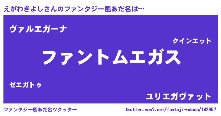 | 女子向けラノベタイトル風あだ名 | 『えがわきよしの卵を拾いまして』 |