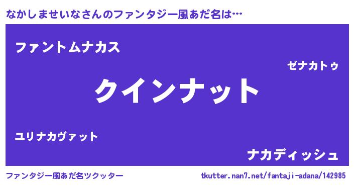 | ポケモン風あだ名 | 『ナックウザ』『ヒナカシマセイナ』 |