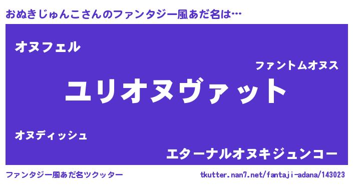 | 男性向けラノベタイトル風あだ名 | 『転生したらおぬきじゅんこだった件』 |
