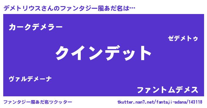 | 欧米人風あだ名 | 『ダニエルデメトリウス』 |
