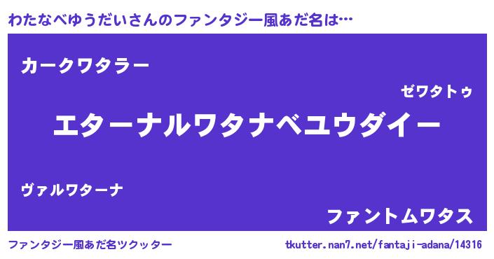 | 意味不明あだ名 | 『わたなべゆうだいフォーエバー』 |