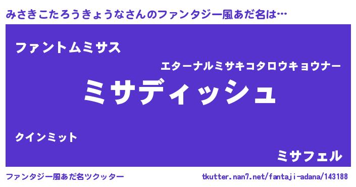 | ヘコむあだ名 | 『みさきこたろうきょうな(遠い目)』 |