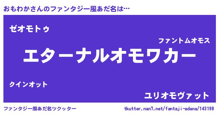 | 意味不明あだ名 | 『おもわかフォーエバー』『自称おもわか』 |