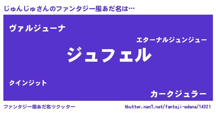 | 男性向けラノベタイトル風あだ名 | 『じゅんじゅの憂鬱』 |