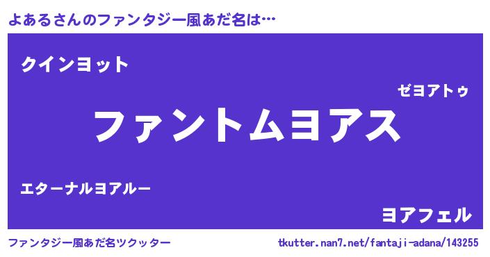 | ヒーロー風カッコイイあだ名 | 『幻影騎士ヨア』『友情の使者よある』 |
