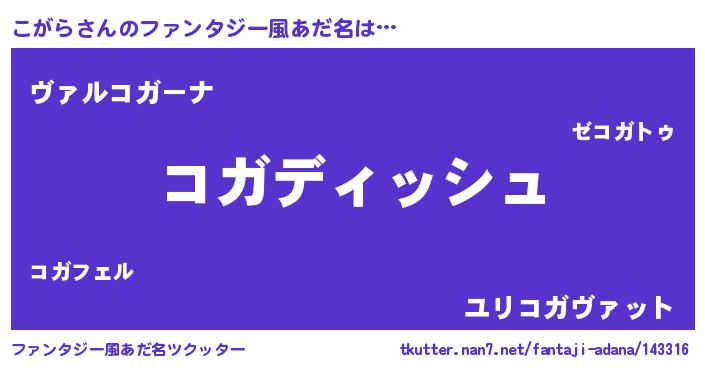 | ヒーロー風カッコイイあだ名 | 『ネオコガラ』『仮面コガダー』 |