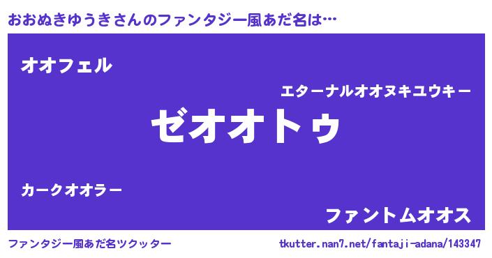| 意味不明あだ名 | 『自称おおぬきゆうき』 |