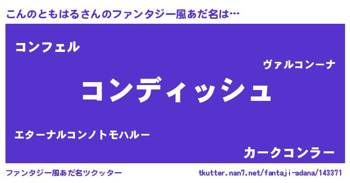 | 意味不明あだ名 | 『永久保存こんのともはる』 |