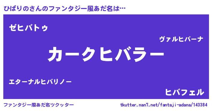| 女子向けラノベタイトル風あだ名 | 『シンデレラひばりの家の靴箱館』 |