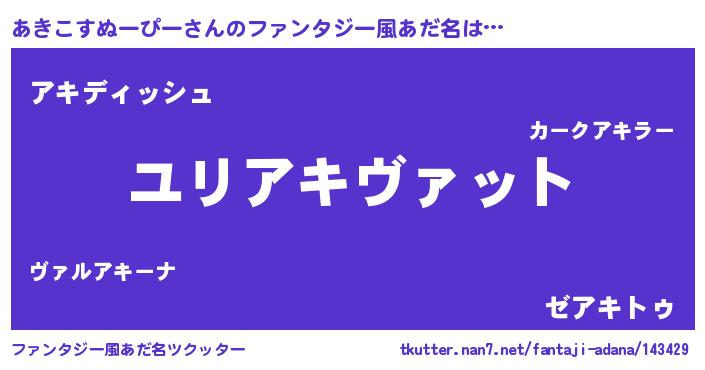 | 伝説のあだ名 | 『古より伝わる吟遊詩人あきこすぬーぴー』 |