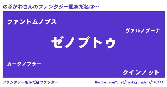 | 男性向けラノベタイトル風あだ名 | 『Re:のぶかわから始める異世界生活』 |