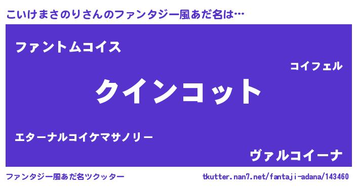| 女子向けラノベタイトル風あだ名 | 『こいけまさのり夫妻のなれそめ』 |