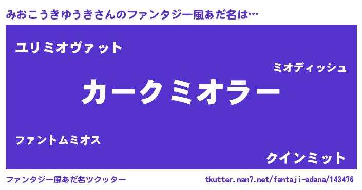 | ヘコむあだ名 | 『みおこうきゆうき(遠い目)』『みお太郎』 |