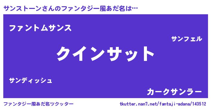 | 男性向けラノベタイトル風あだ名 | 『おまえをオタクにしてやるから、俺をサンストーンにしてくれ! 』 |