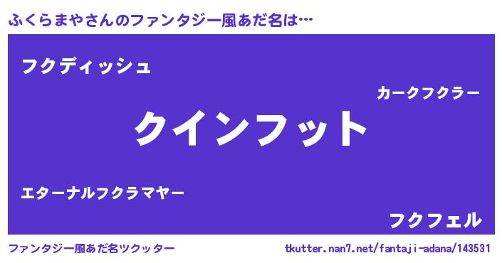 | ヘコむあだ名 | 『ふくらまや(苦笑)』『ふくもー』 |
