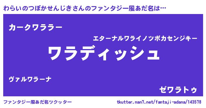 | ヘコむあだ名 | 『わらいのつぼかせんじき(小並感)』 |