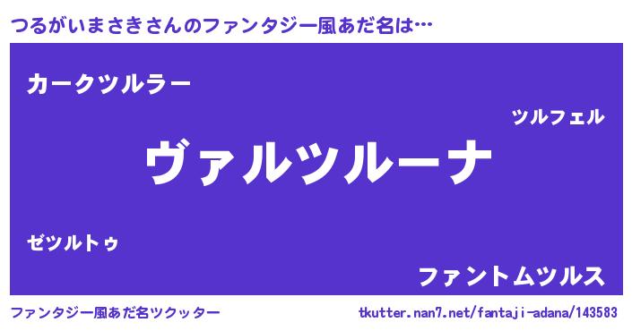 | 男性向けラノベタイトル風あだ名 | 『この素晴らしい世界につるがいまさきを!』 |