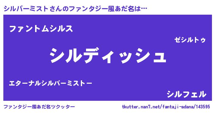 | 意味不明あだ名 | 『永久保存シルバーミスト』 |
