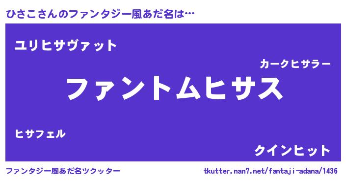 | ヒーロー風カッコイイあだ名 | 『幻影騎士ヒサ』『正義の使者ひさこ』 |