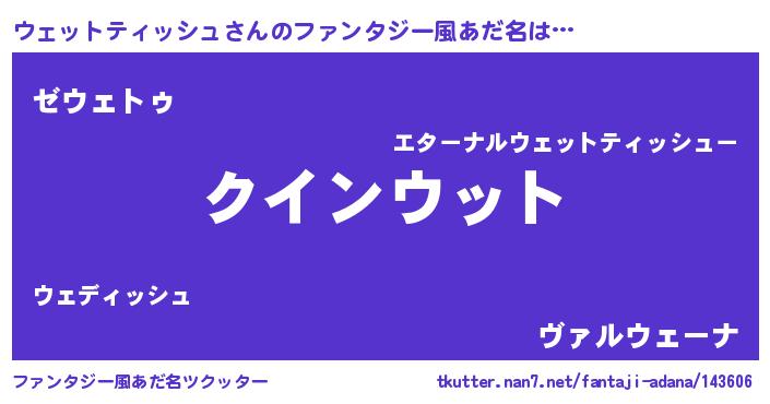 | 欧米人風あだ名 | 『ダニエルウェットティッシュ』 |