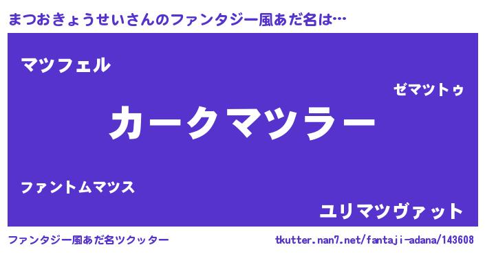 | 胡散臭い通販商品みたいなあだ名 | 『億万長者になれる霊験あらたかなお札…その名も「まつおきょうせい」』 |