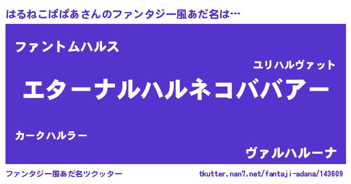 | 女子向けラノベタイトル風あだ名 | 『はるねこばばあの雑貨屋さん』 |